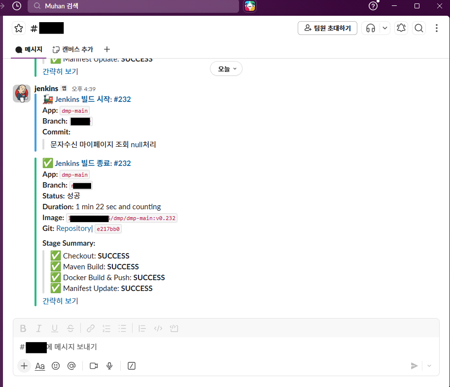 배포가 완료되면 Slack으로 결과 알림이 옵니다.