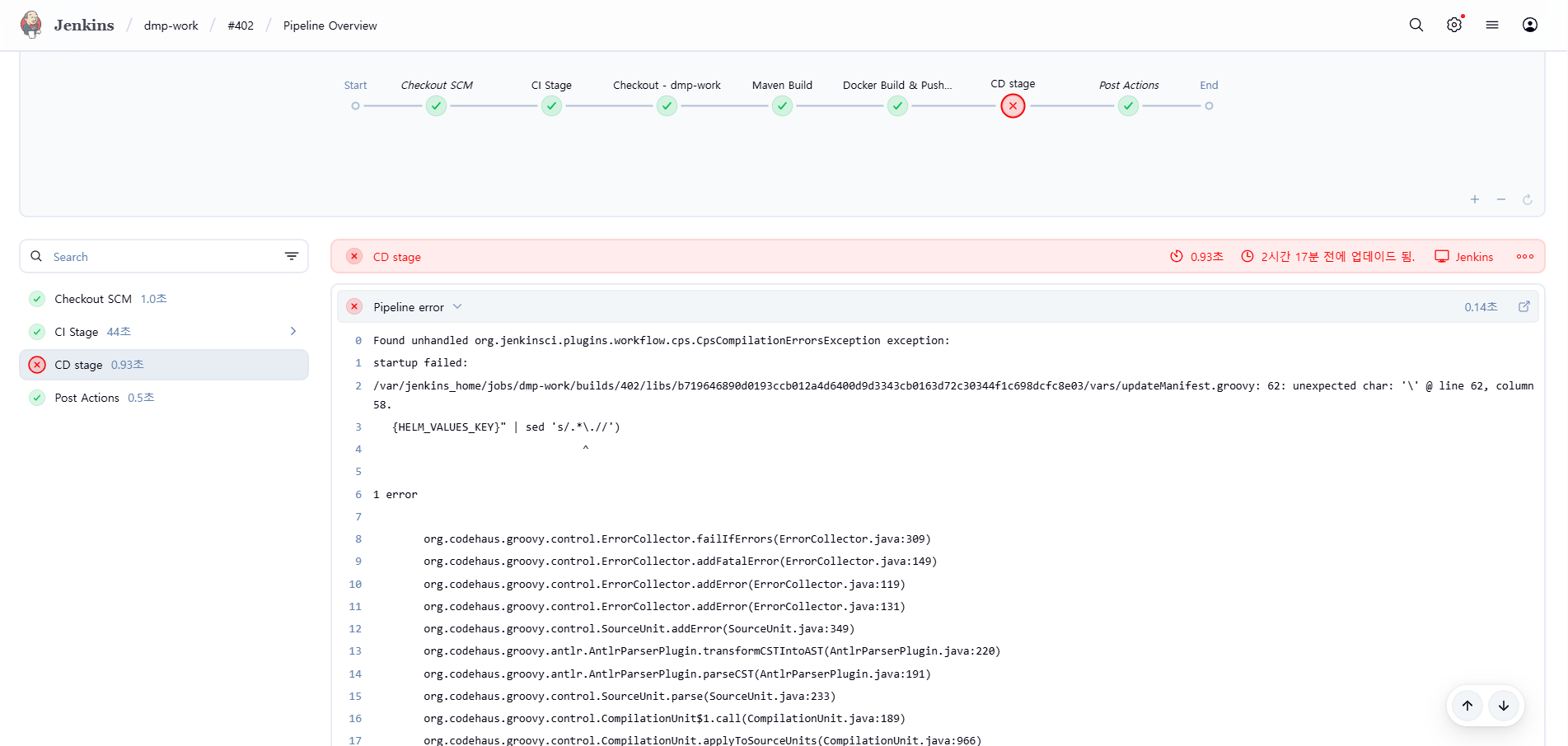 - Jenkins에서 values.yaml을 고칠 때 sed/yq를 shell로 돌리면 Groovy 파서랑 싸우게 된다. 차라리 Groovy 네이티브로 처리하는 게 깔끔