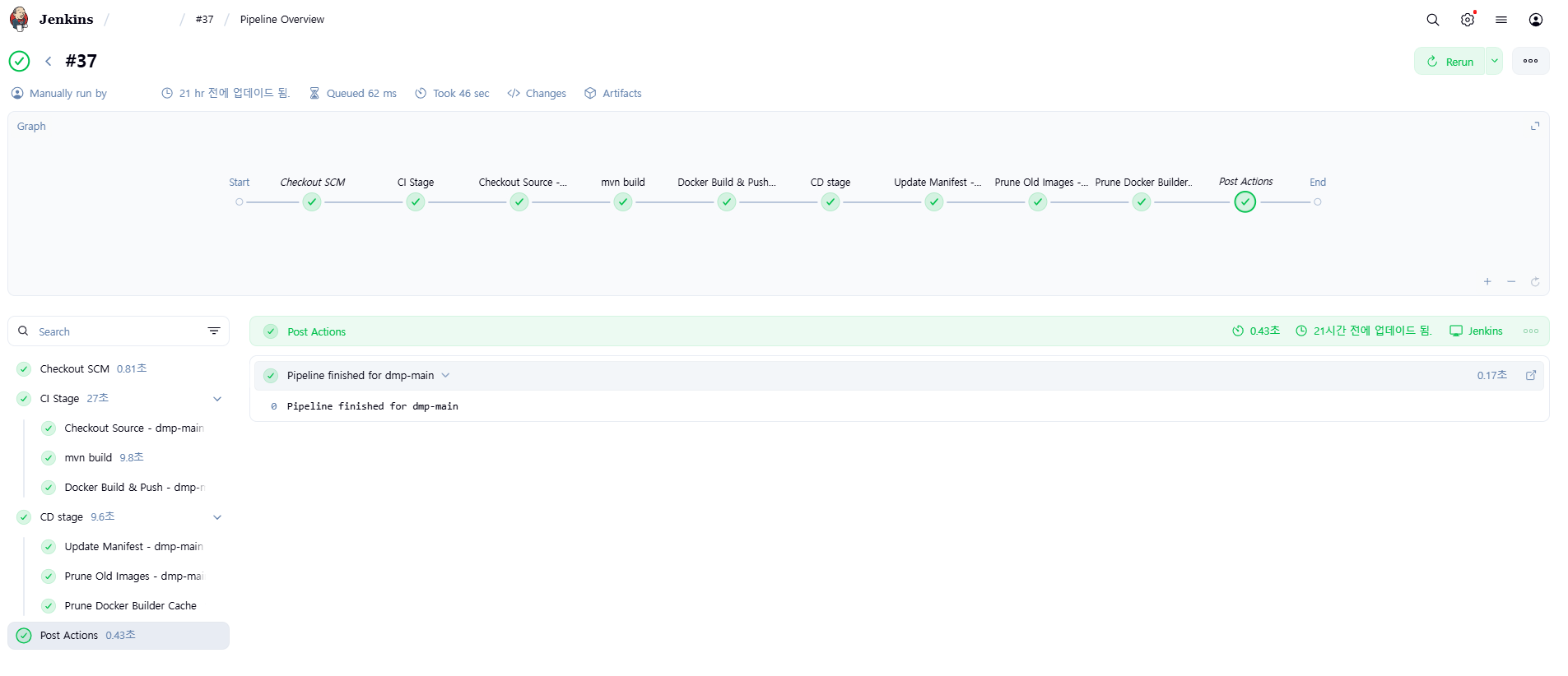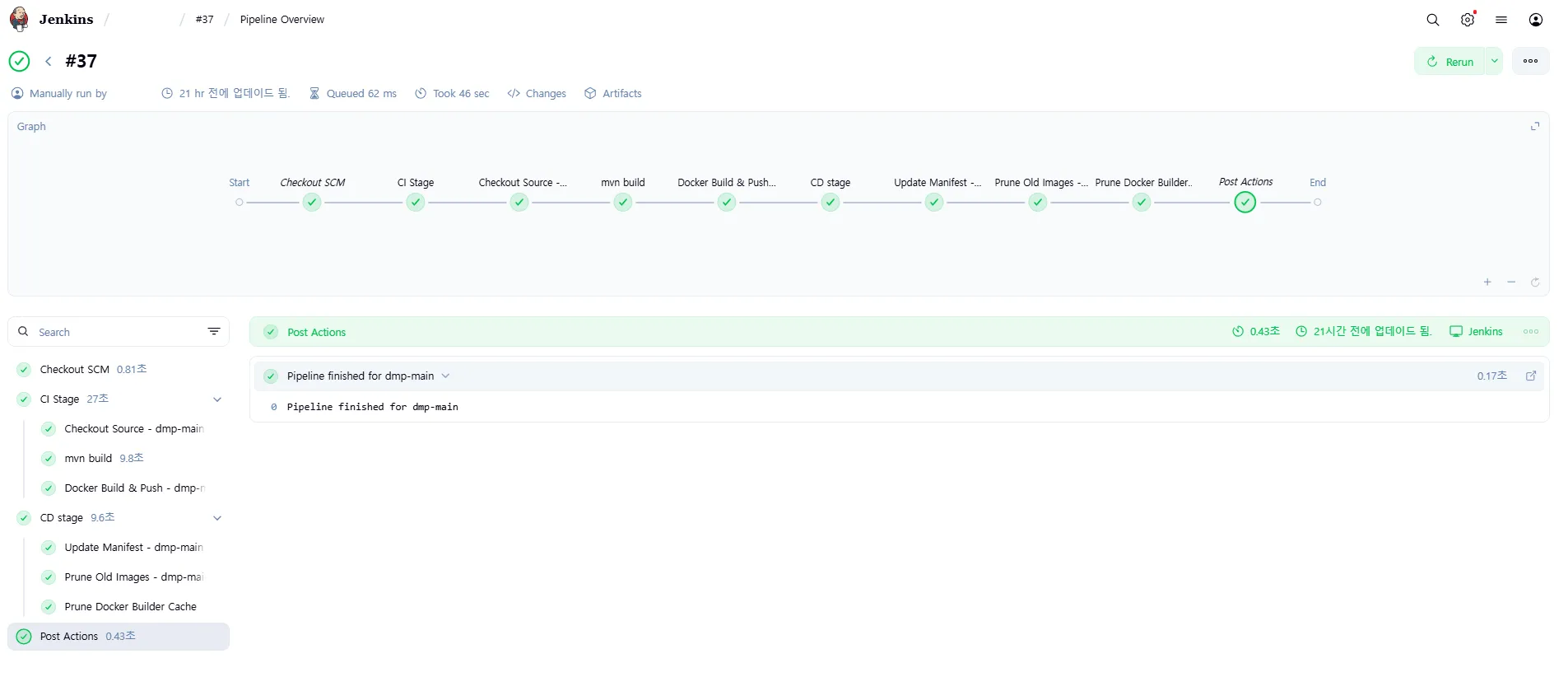 빌드 성공 시 Pipeline 내역